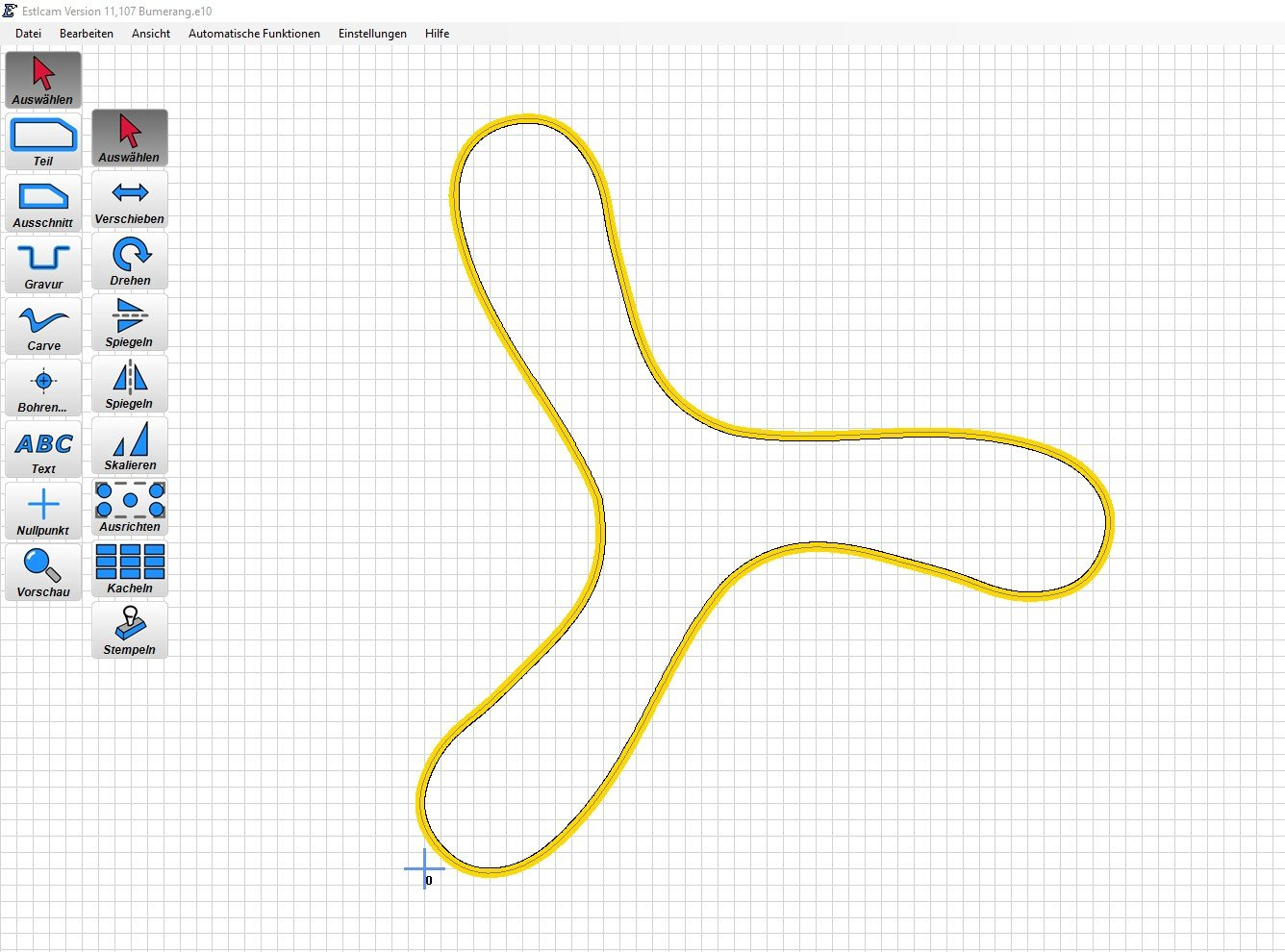 Schnell wurde ein dreiflügeliges Objekt gezeichnet, auf eine handliche Größe skaliert und in einer DXF-Datei abgespeichert.